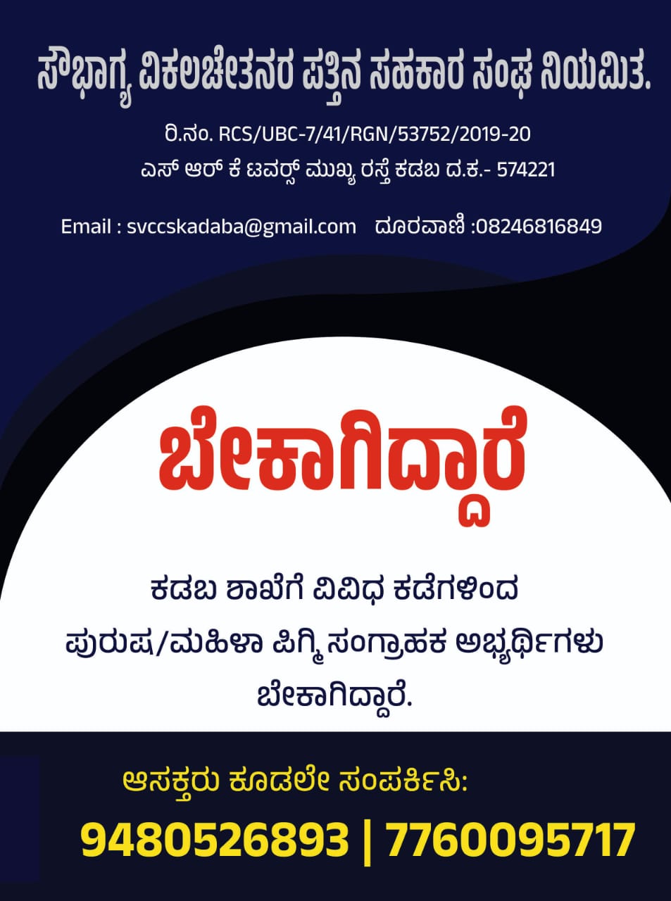 Saubhagya Vikalachethanara Pathina Sahakara Sangha LTD. Kadaba, Dakshina Kannada District - Karnataka State.
